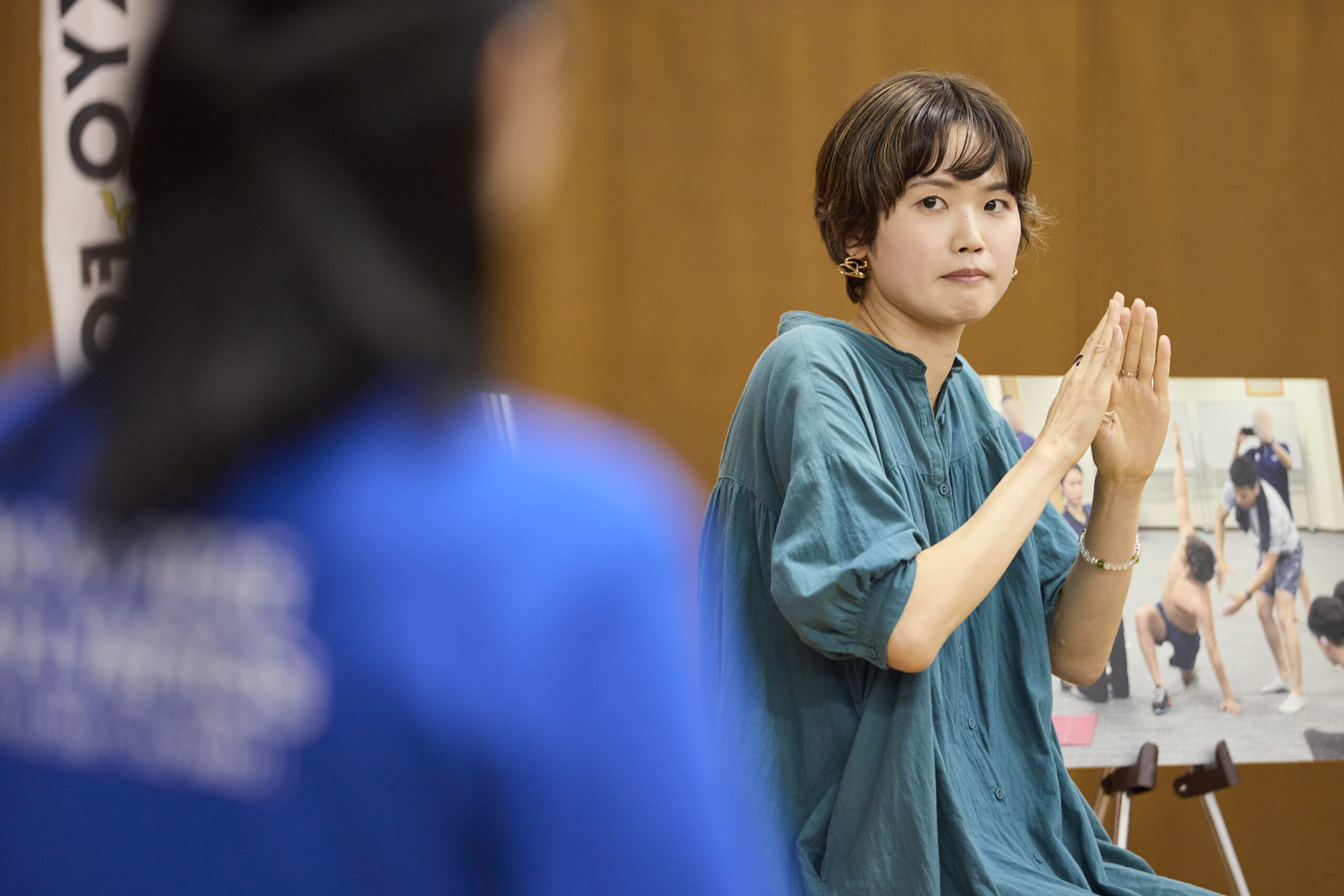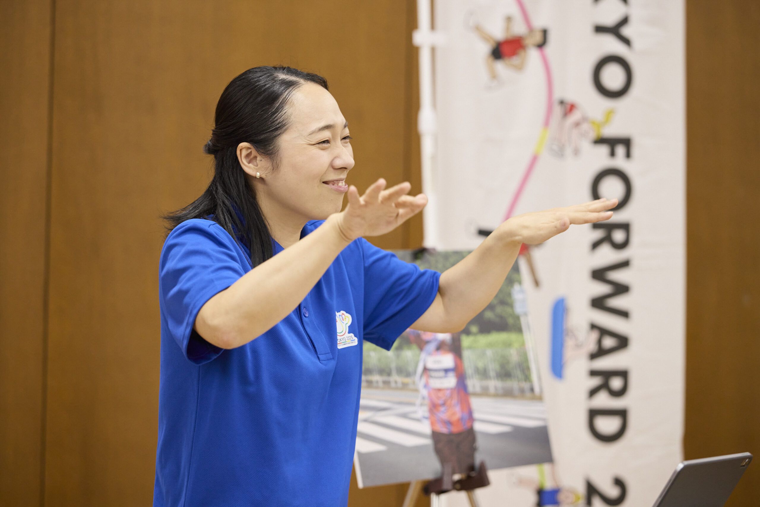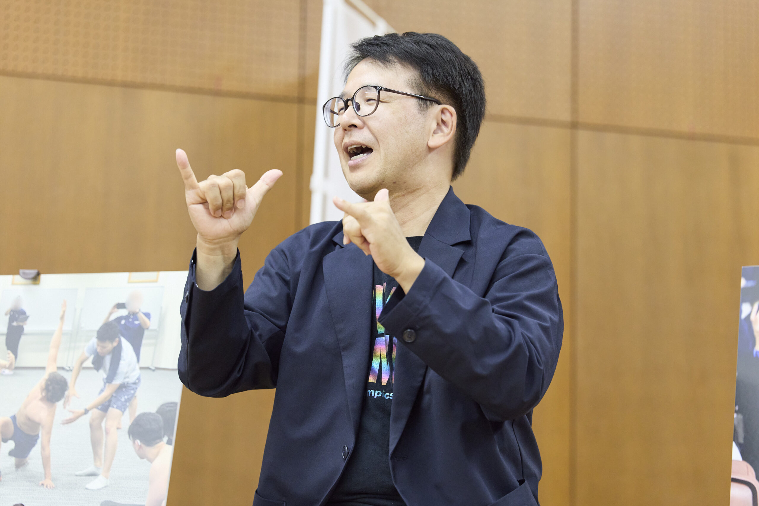 実際の練習の中では、きこえるコーチが自分の身体を使って指導する場面も。そのときには逐一通訳するのではなく、「それよりもしっかり見た方がわかりやすい」と、選手の視線を誘導する工夫を行います。そのために、コーチにも動くタイミングを調整してもらうなど連携してもらうことで、情報を円滑に、かつ効果的に得るための環境づくりにアプローチしています。