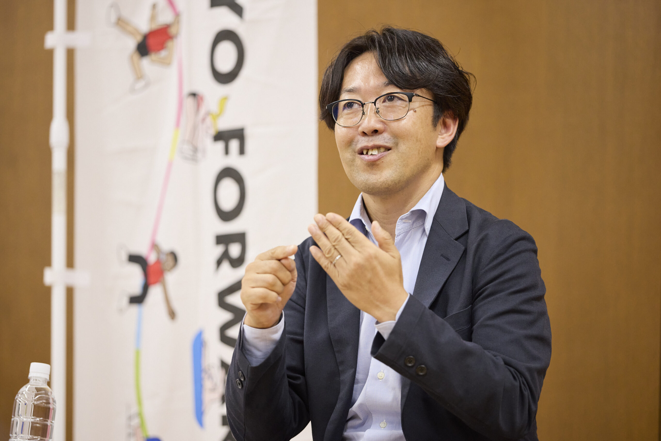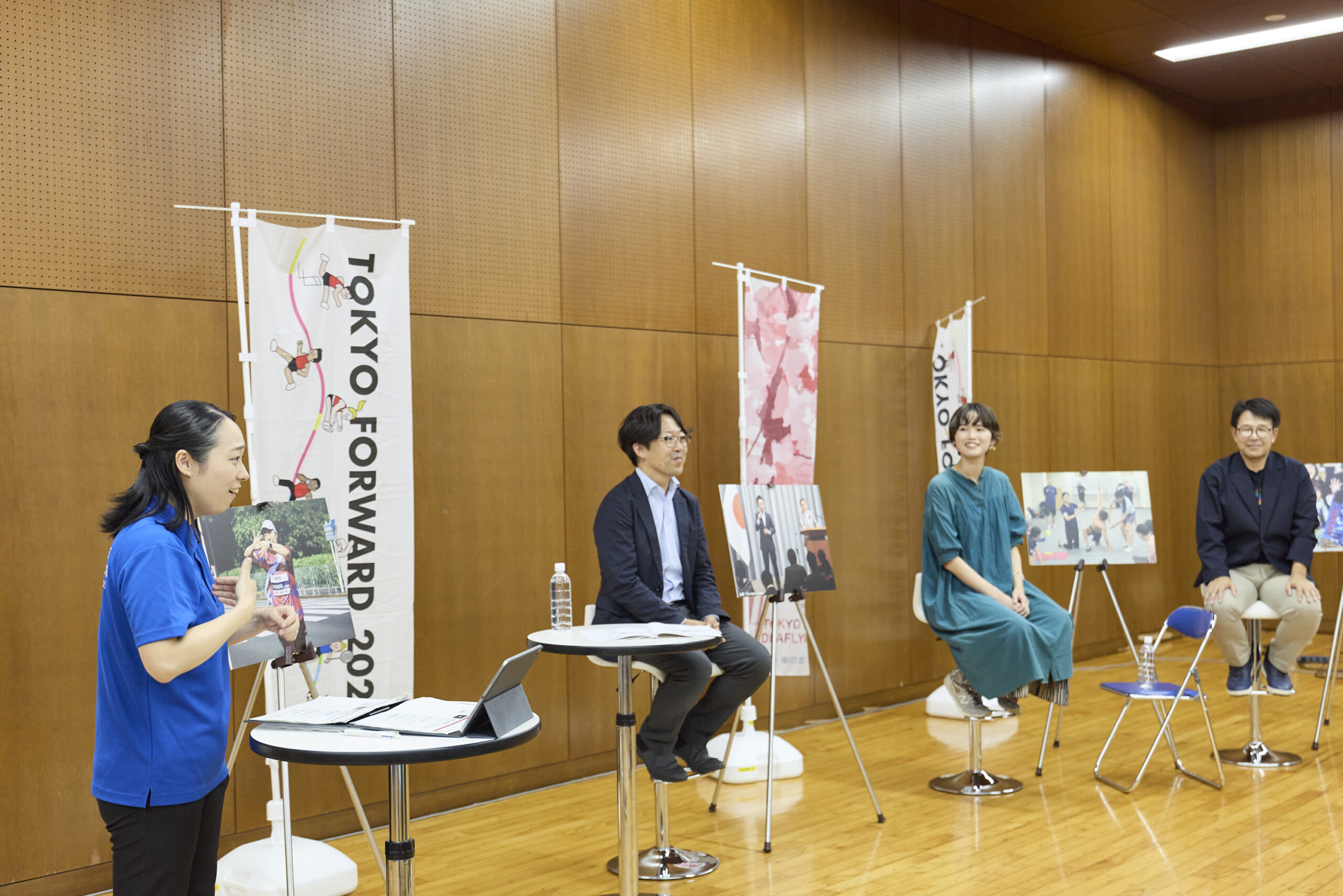 ろう者でありデフリンピック応援アンバサダーを務める川俣郁美さんをファシリテーターに迎え、第一線で活躍する手話通訳士の江原こう平さん、佐藤晴香さん、橋本一郎さんをパネリストにお招きしました。