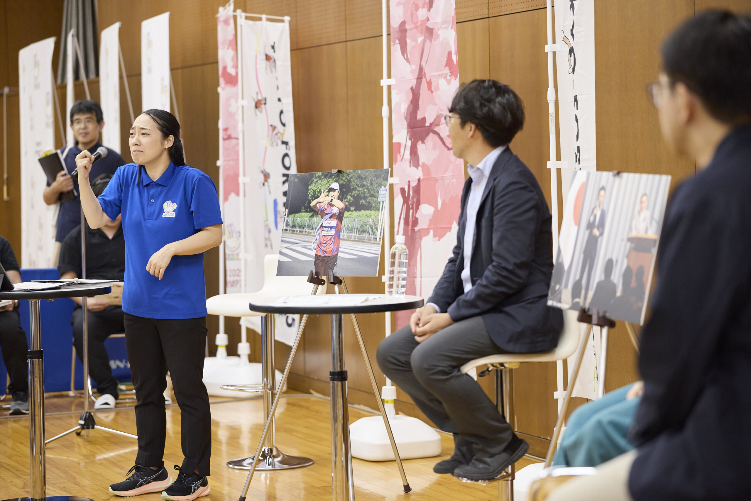 そして佐藤さんは、「ぜひ会場に来てほしいです。手話言語でコミュニケーションをとっている環境や、観る人も手話言語で会話したり応援したりする場にいることは貴重な機会。手話言語が分からない人がマイノリティーになる経験は面白いはずです」。その体験を通して、きこえない・きこえにくい人とつながりを、「デフリンピックが終わった後も形として残ってほしい」と想いを込めて伝えました。