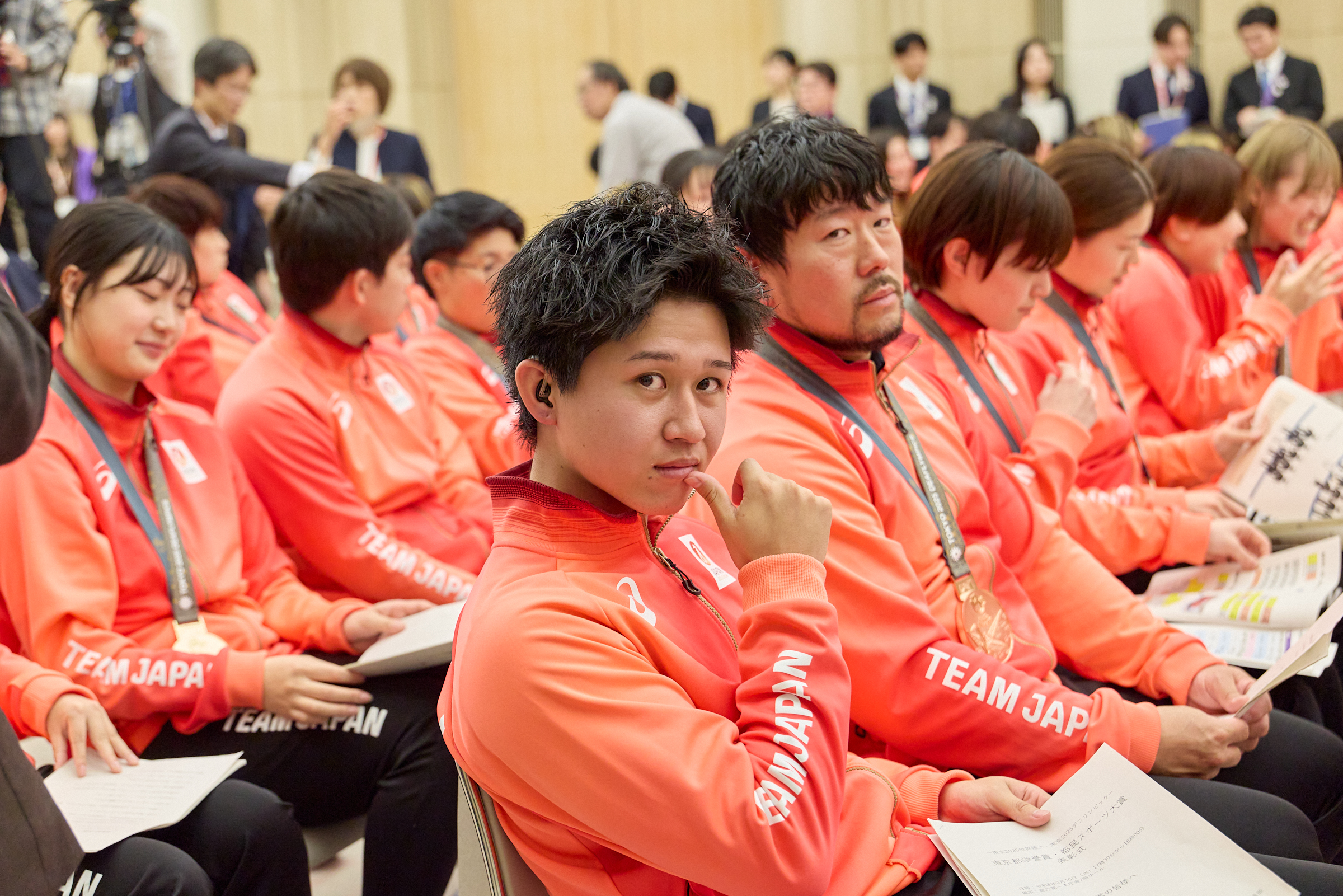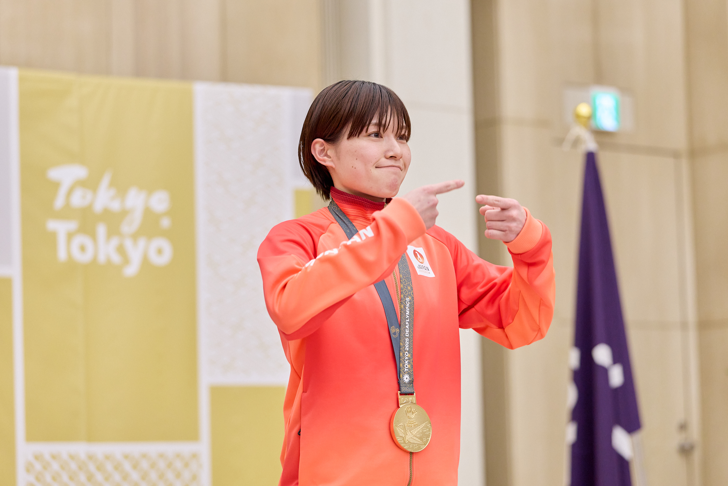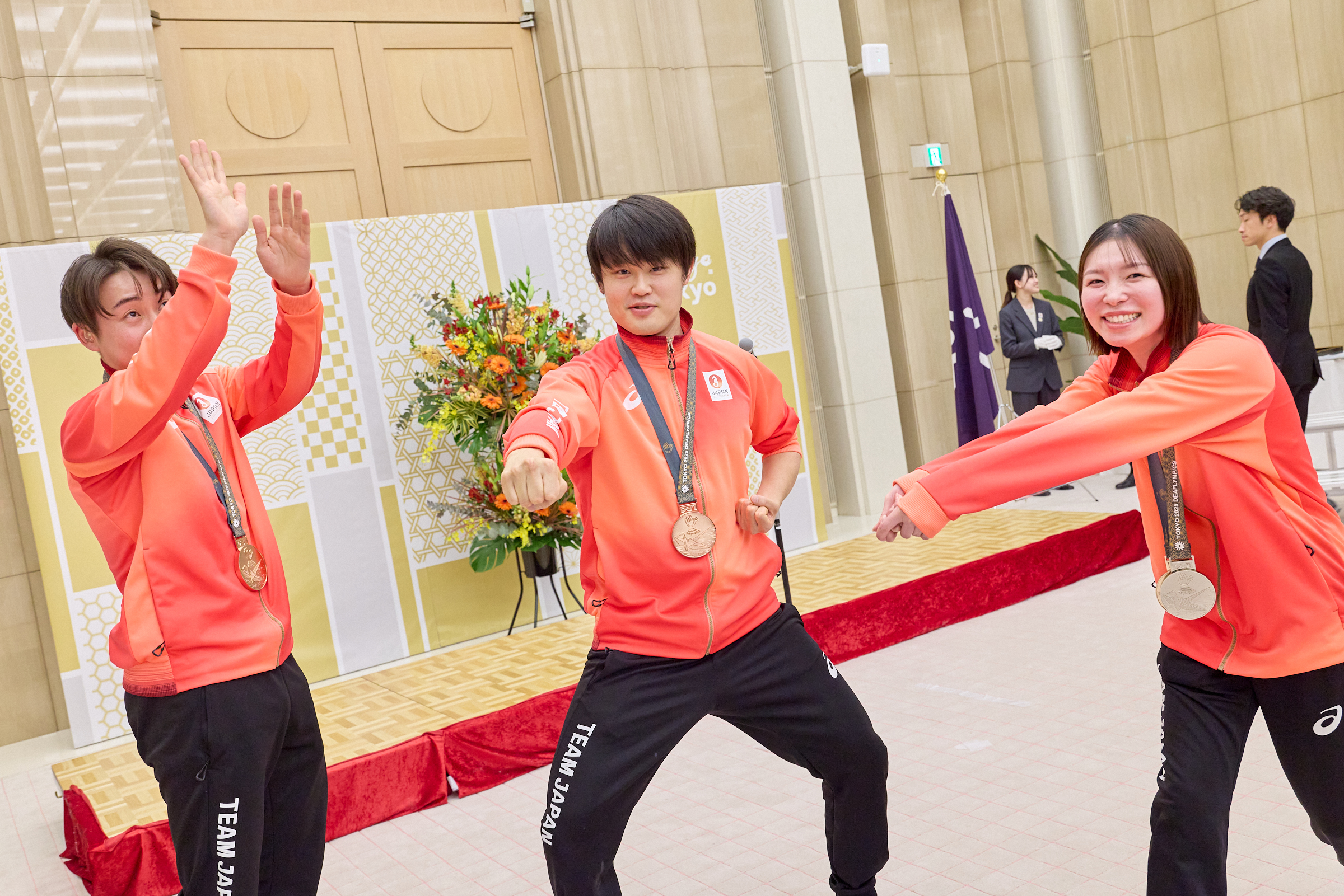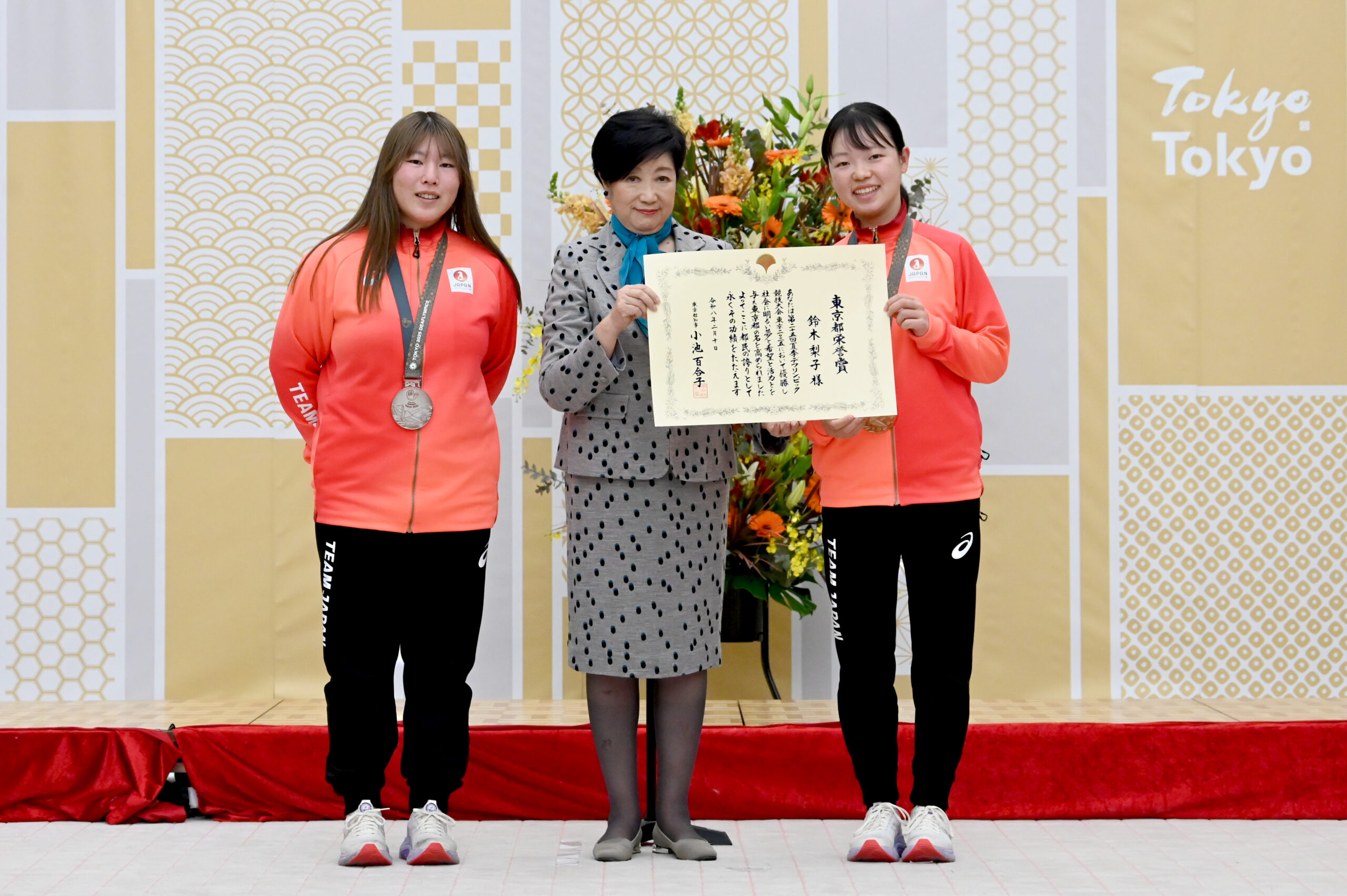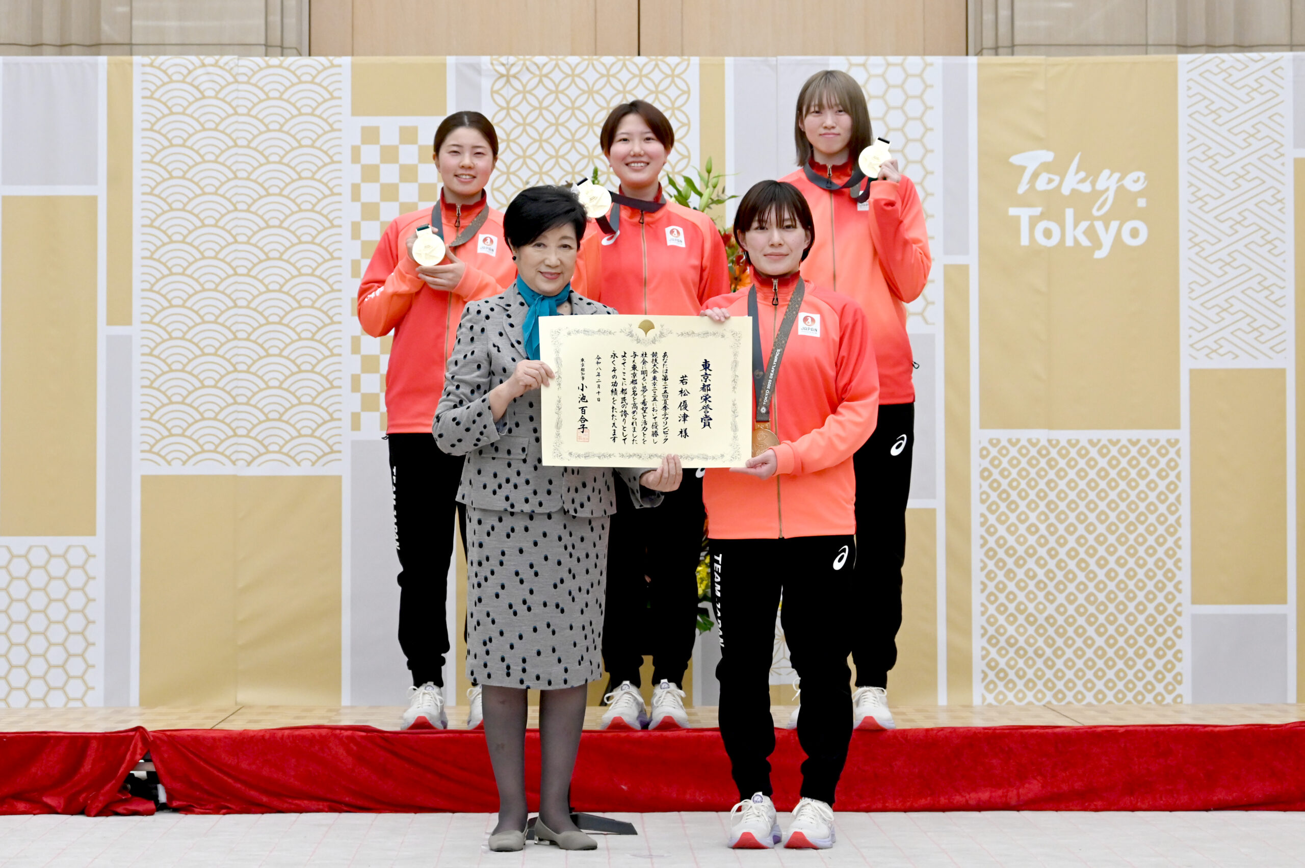 「今大会を通じて創出されたレガシーを磨き上げ、“スポーツの力”で東京の未来を切り拓いていきます」と決意を新たにし、「本日受賞された皆様が、メダル獲得の喜びをエネルギーに変え、一層飛躍されることを祈念し、お祝いの言葉とさせていただきます」と祝辞を述べました。