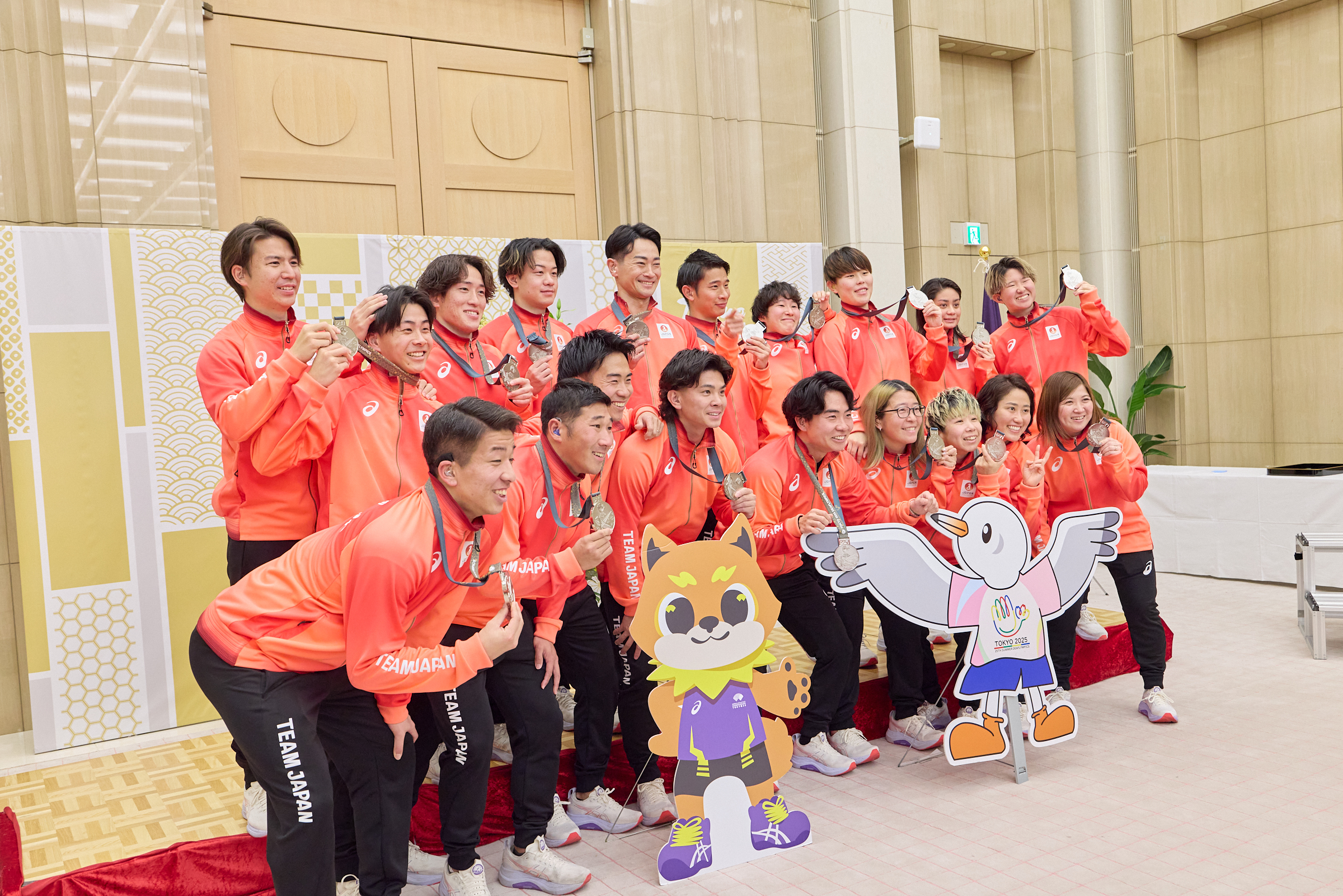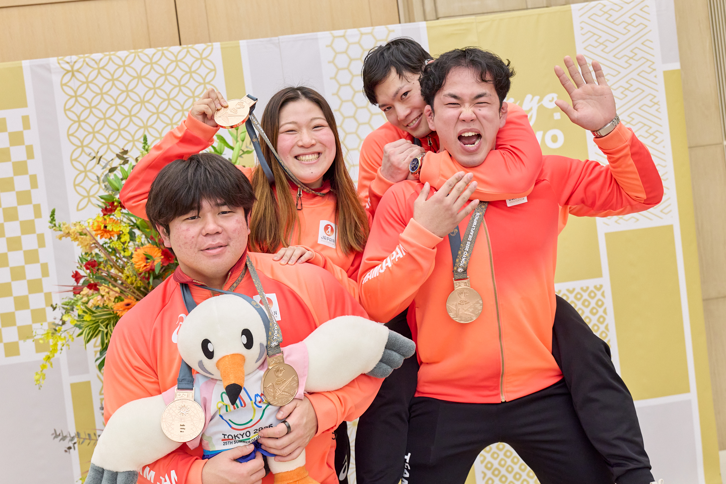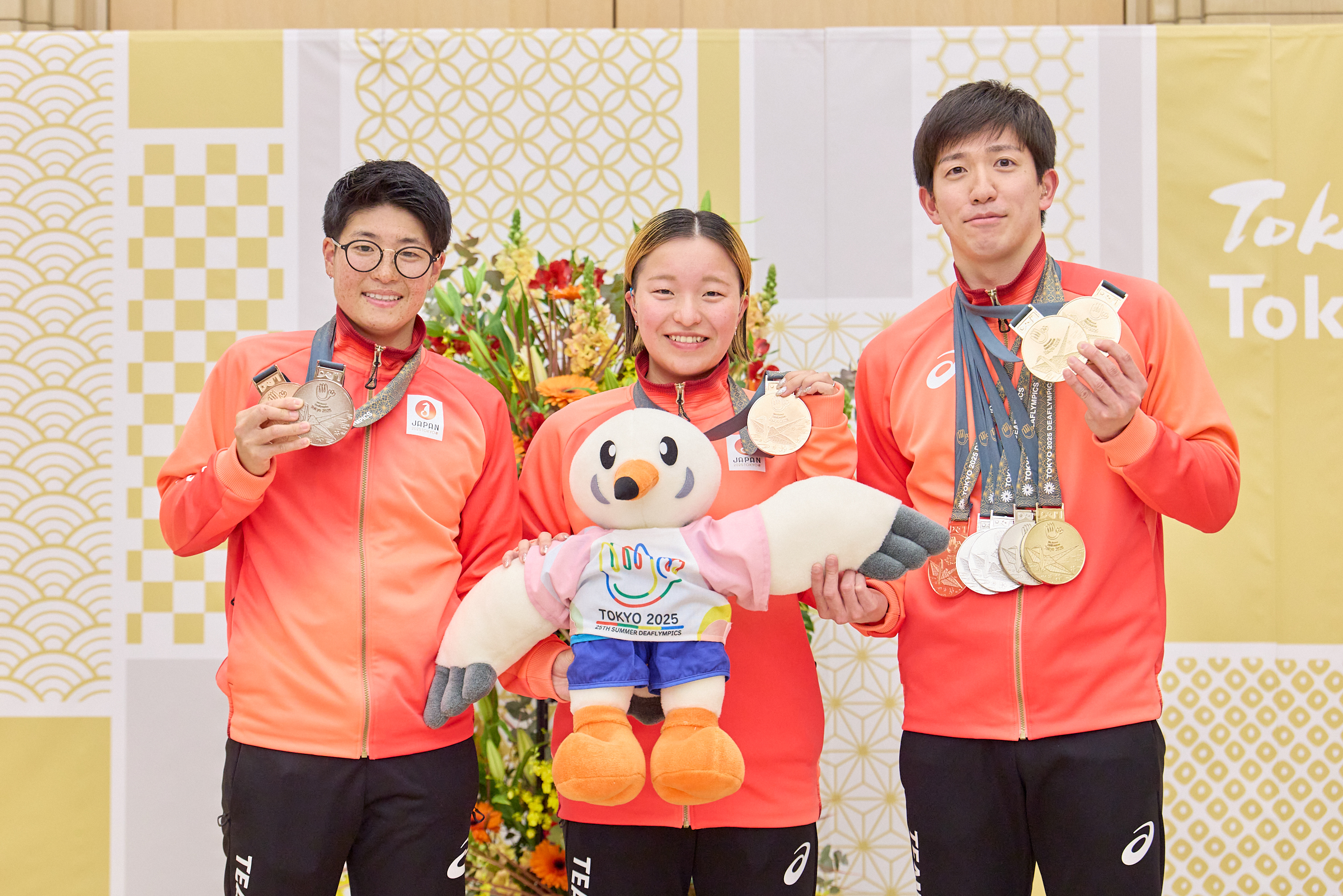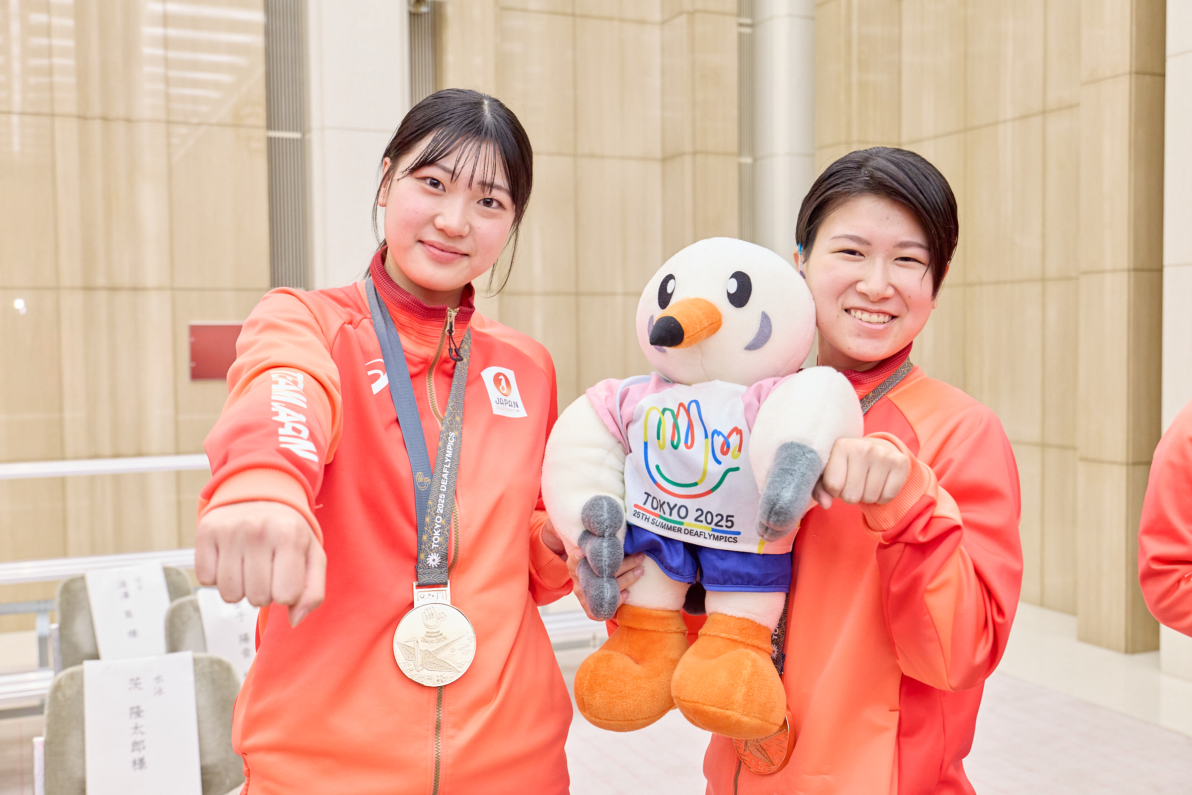キャプテンを務めた若松優津選手からは、メダリストを代表して「今年で100周年を迎え、東京都での初開催となったデフリンピック。私たちは、この記念すべき舞台で、それぞれの競技に全力で向き合い、過去最多のメダルを獲得することができました。」
