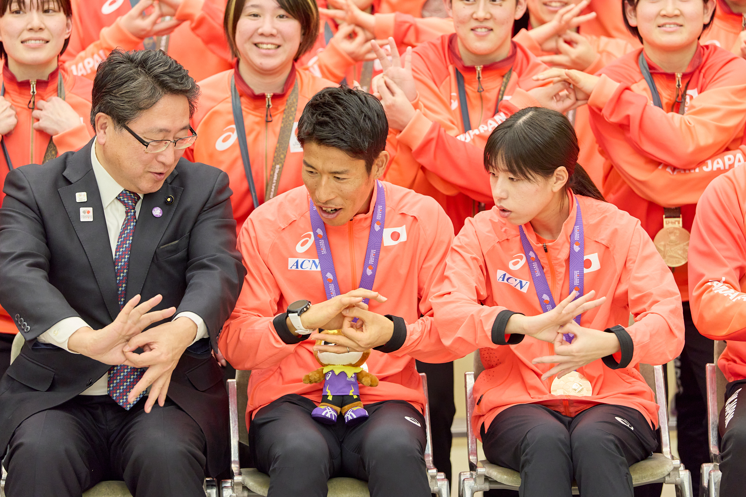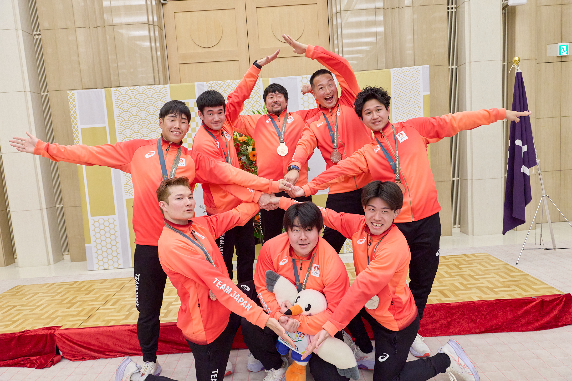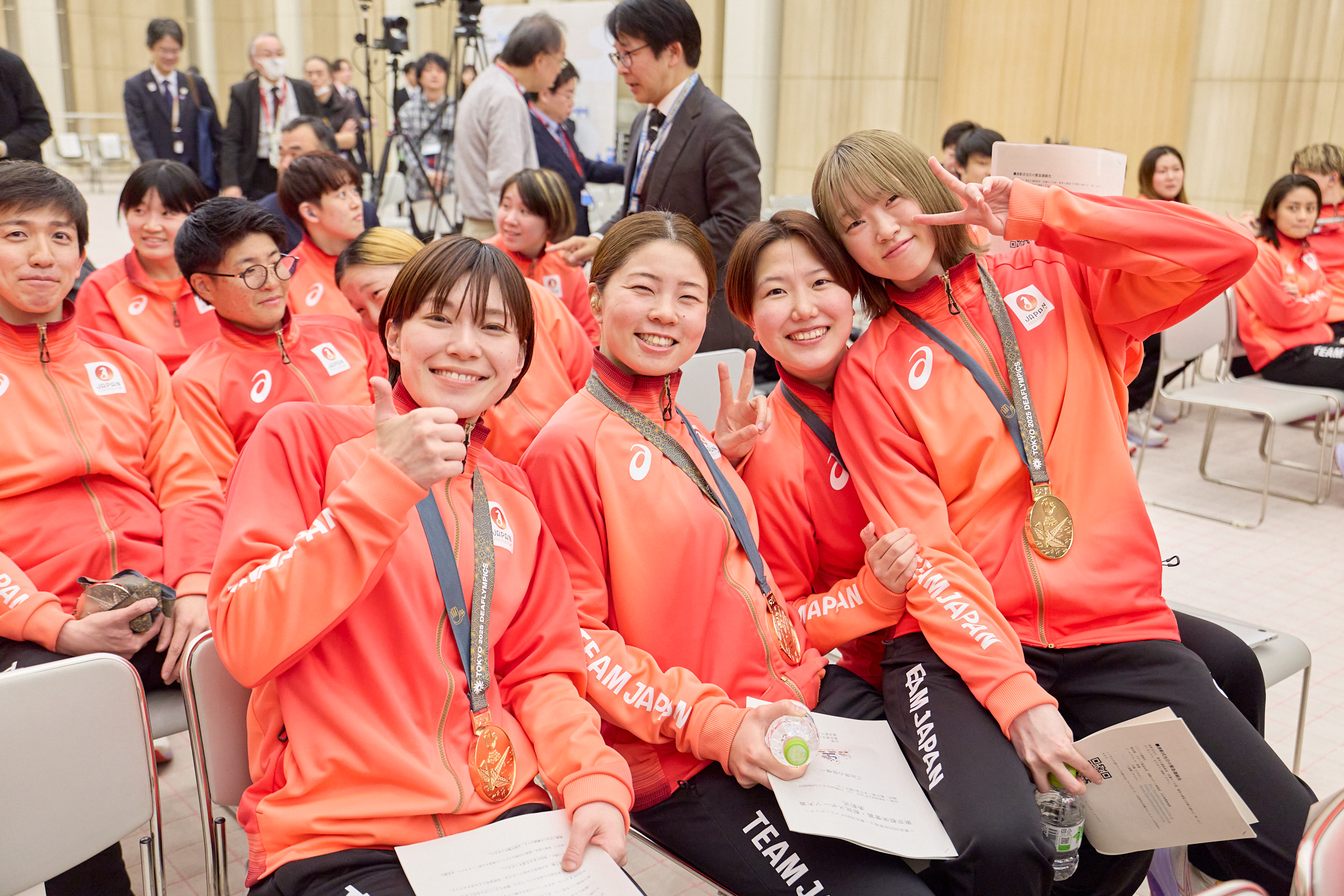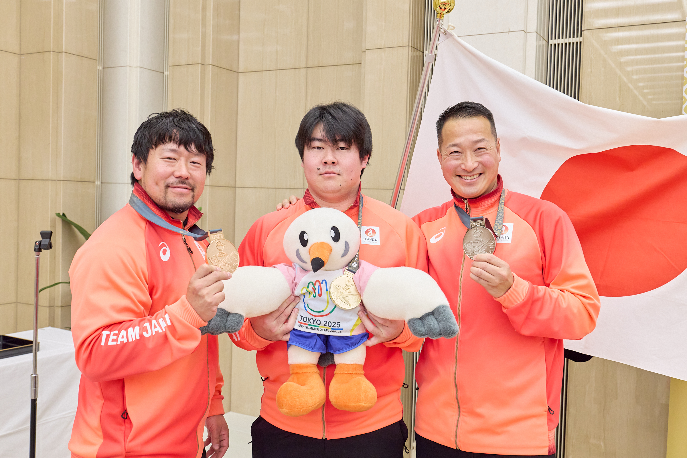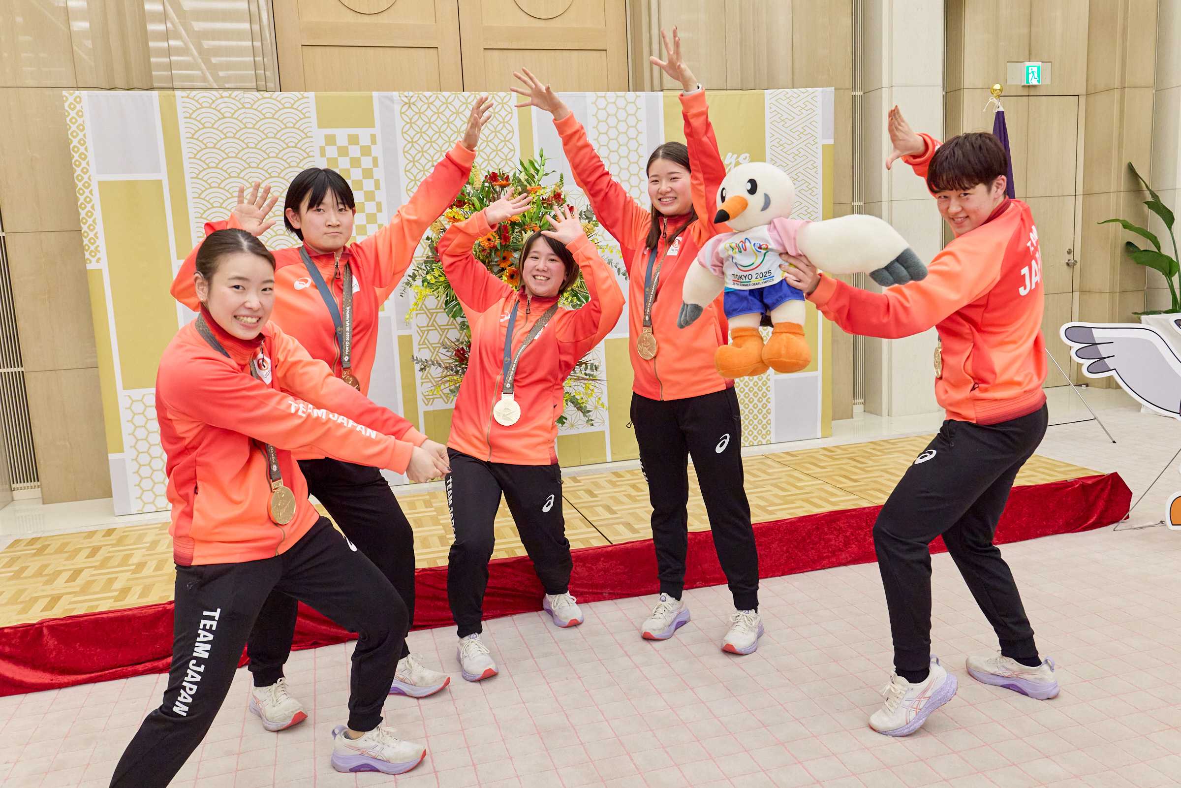 キャプテンを務めた若松優津選手からは、メダリストを代表して「今年で100周年を迎え、東京都での初開催となったデフリンピック。私たちは、この記念すべき舞台で、それぞれの競技に全力で向き合い、過去最多のメダルを獲得することができました。」