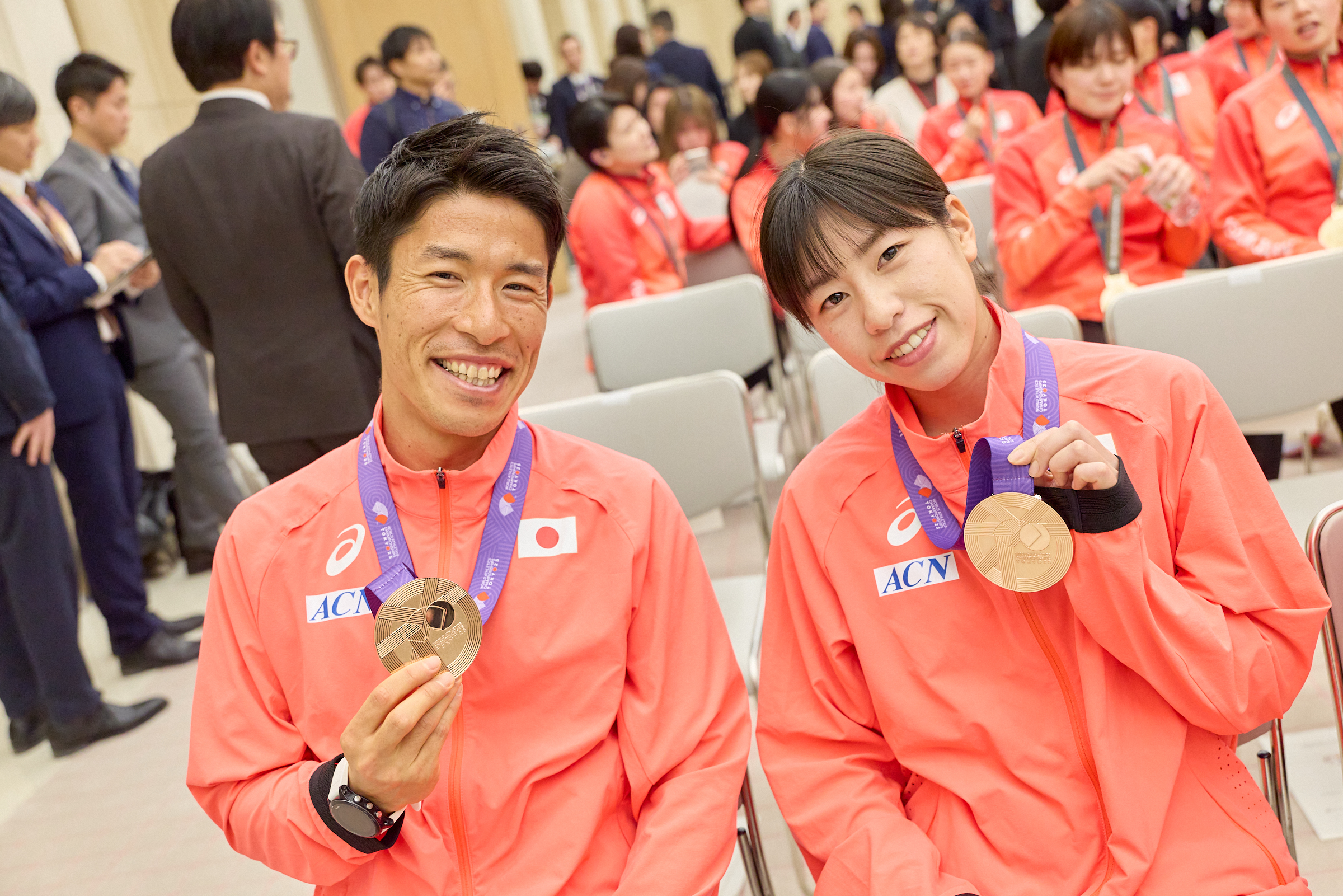 「私と藤井は比較的マイナーな“競歩”の選手ではありますが、この受賞に恥じぬよう、競歩界を盛り上げもっと力つけて、陸上競技会、スポーツ界にも貢献していけるよう精進していきます!」と熱い意気込みも。